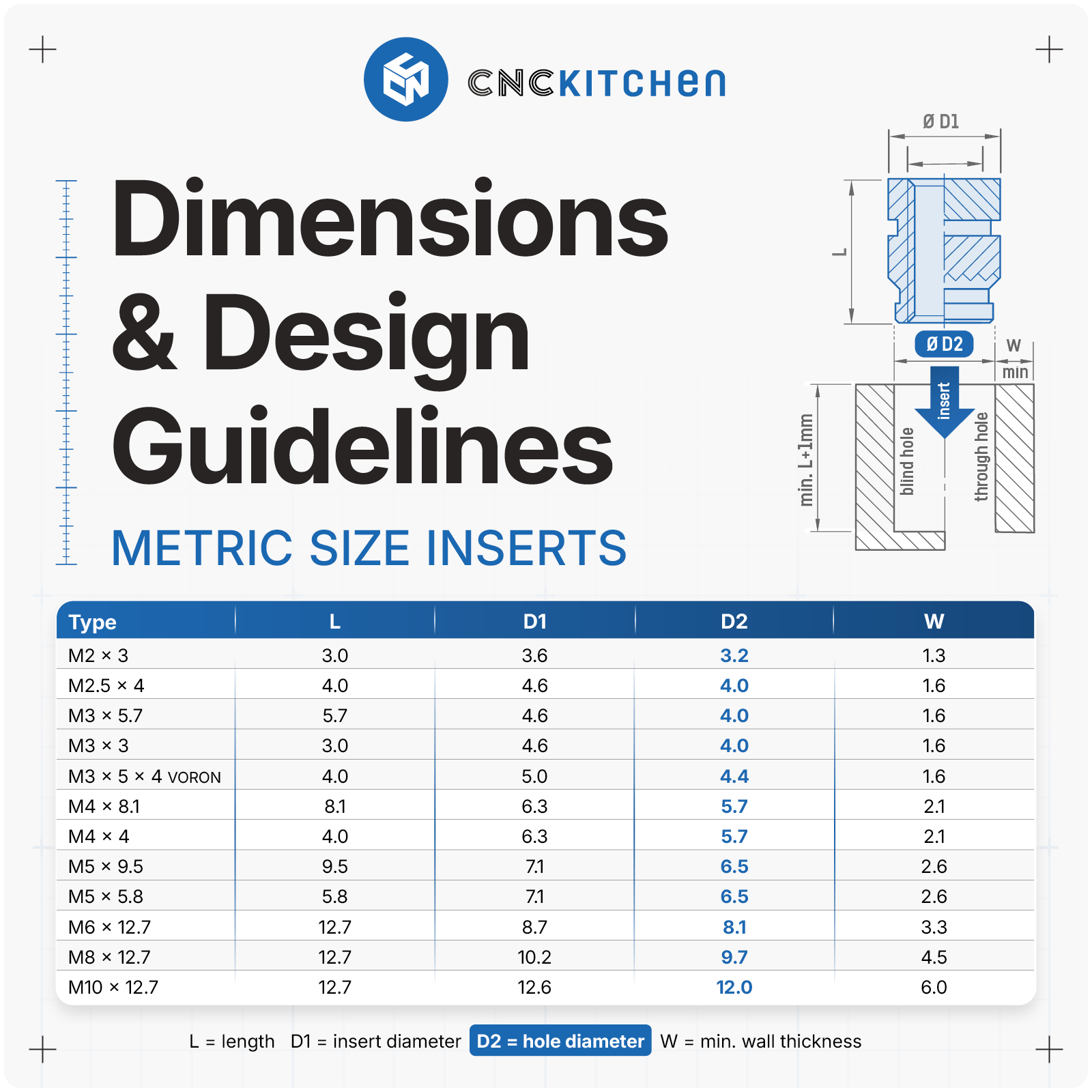 CNC Kitchen loddebolt-spiss-sett for gjengeinnsatser. Modulær type.